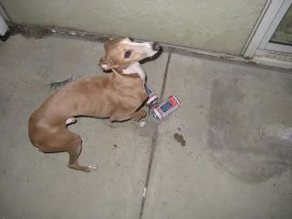 Saturday was Tami’s baby shower! She looks sooo cute! Is Hunter done cooking yet? We can’t wait to see him! I didn’t win any of the baby games but I think we all know how great I am with babies so pretty sure no one expected me to. I did get to catch up with some great girls I rarely see anymore. After the shower I headed to Shane’s to start his birthday festivities. We watched the fights at a friend’s house. In between the fights Rich asks us if we want to see what his daughter built earlier that day. We of course say yes thinking it is something more appropriate for an 8 year old to build than a machine gun! What the fuck? Anyway when the fights we over we headed over to another friends and had some drinks. This is Steve. He is Kenny’s roommate’s dog and he is an alcoholic. If you leave your drink unattended Steve will sneak over, somehow pick it up by the lid and take off with it. He’s a miniature greyhound and runs gnarly fast and when he gets mad at his owner Kenny said he will jump the fence no problem and take off down the street. He has that guilty look on his face because that’s his pile of stolen beers: