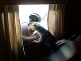 Early Thursday morning they took the jet skis over to the house. Lollie and I put our feet in the water while we waited for them to get back. They brought breakfast and we hauled the trailer over to the house. We thought it would be funny to park the trailer in front of the house you know like they do with the bus on that Extreme Makeover show? Except we thought it was really funny because our trailer is what we like to refer to as a classic and the outside of the house is… well… take a look…