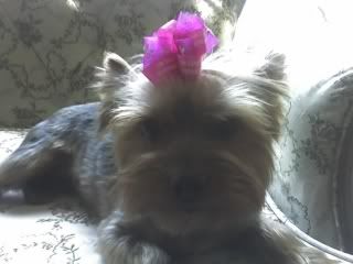 Shelly has been on a hiatus this week, she has been in Havasu with her wild friend Cindy living it up. I had no idea she was even home because I have been at Shane’s. But, apparently she is home. And with a bang too, I just got a picture message saying “Someone went 2 the beauty parlor”. And from the picture it appears she sure did, they butchered my poor Lollie Lynn. First things first when I get home, that fagot ass bow placed directly on top of her head is gone…